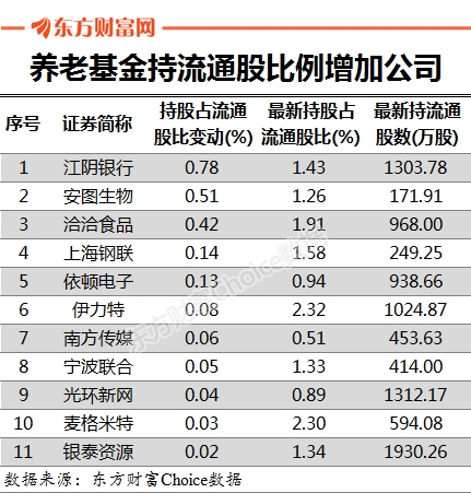 养老金持11股流通股比增加