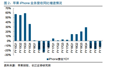 长江证券研报预测,苹果最快于2020年秋季推出首款支持5G功能的iPhone,落后于安卓竞争对手。考虑到2019年处于4G向5G转换的过渡年,此时消费者采购iPhone这一价格区间的设备的意愿是相对较低的,同时供给端创新低潮延续,使得换机需求向明年递延。