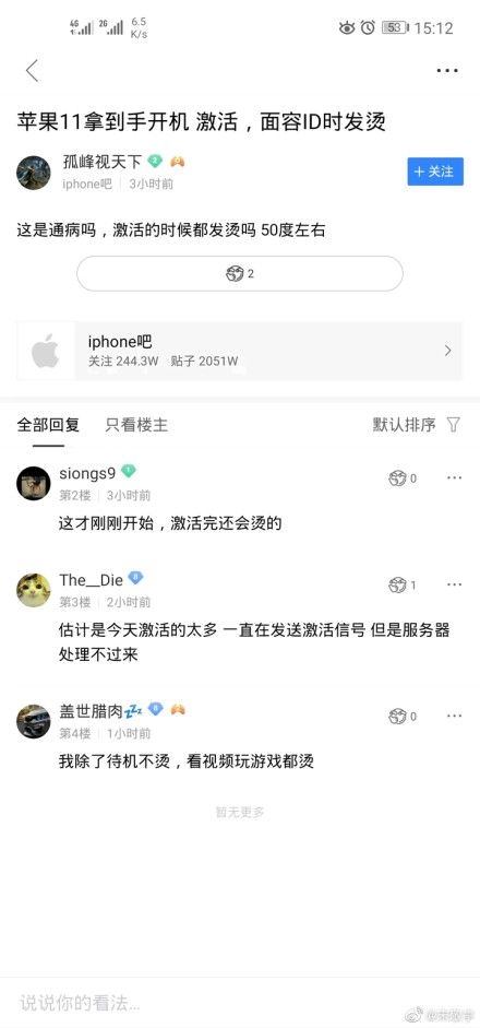 首批iPhone11被曝发热严重,“激活时50度左右”;
