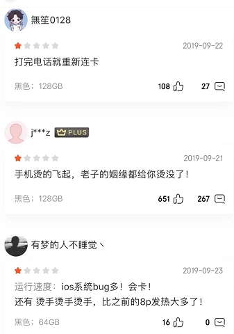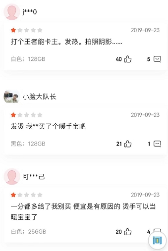 京东上,买家纷纷吐槽,iPhone 11系列的A13处理器发热量较大,包括无任何操作发热、玩游戏很烫等,尤其是在备份以及激活时比较严重,聊个微信、打个王者都发热、卡机,简直买了个暖宝宝……