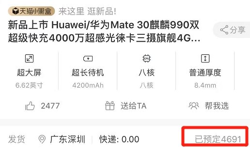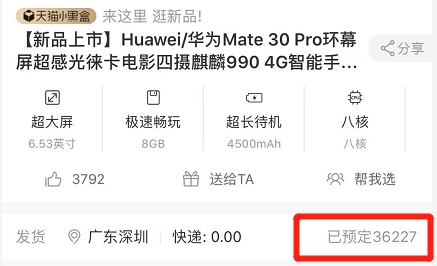 也就是说,天猫京东两大平台Mate30整体预售已超13万台。加上其他平台和未公布预售量的华为官网,华为预售明显超过13万部,甚至有20万部或更好!天风国际分析师郭明錤此前发布的报告中预计,华为Mate 30系列预估2019年出货量约2000万部。