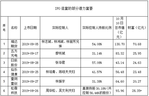 《国际金融报》记者初步统计,近两个月,A股有8家上市公司的实控人通过公司成功IPO实现财富增值,且截至10月10日相应持有股份的市值大于20亿元,身家迈入百富榜门槛。