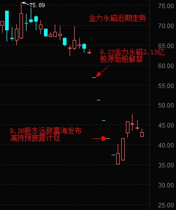 可事出必有因,对于此次金力永磁的疯狂下跌,市场观点则倾向于是限售股解禁和股东减持计划。原来在9月23日,东方财富Choice数据显示,金力永磁的2.13亿股首发原始股被解禁(占金力永磁总股本51.5%),涉及股东为82名,解禁市值120.89亿元。