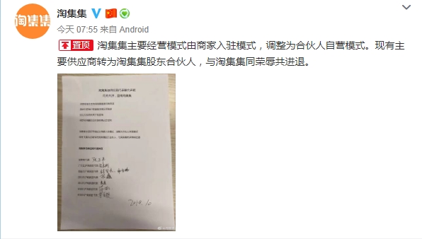 在此背景下,10月16日淘集集宣布,主要经营模式由商家入驻模式,调整为合伙人自营模式。淘集集称,现有主要供应商转为淘集集股东合伙人,与淘集集同荣辱共进退。