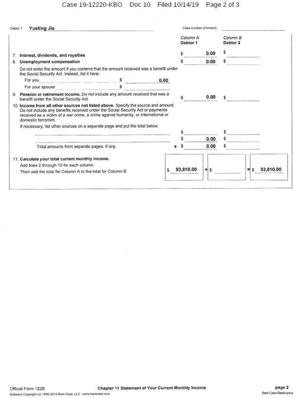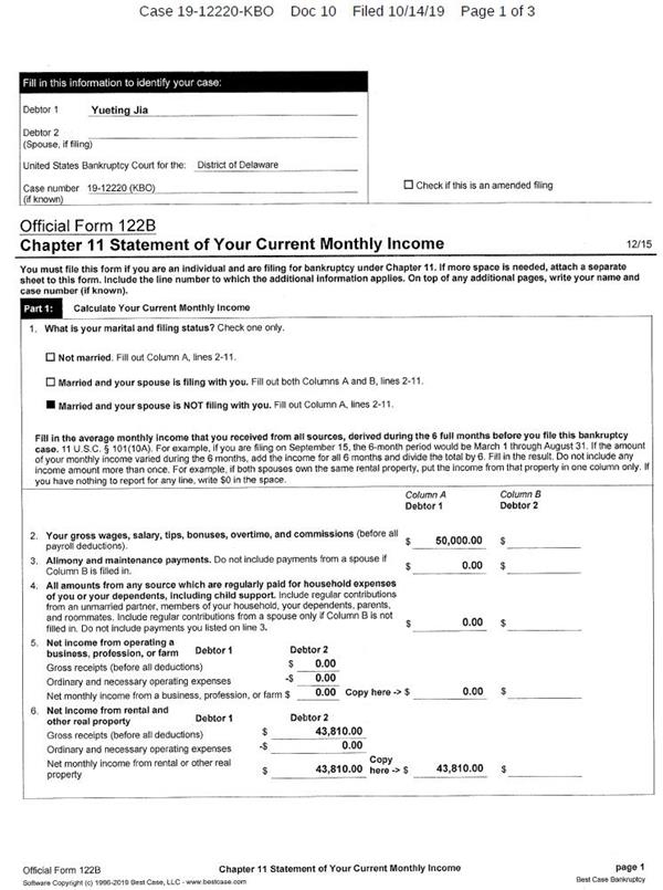 摘要:  随着贾跃亭在美国申请个人破产重组的文件公开,他个人近期的财务状况也被曝光。  10月17日,澎湃新闻记者从贾跃亭个人破产重组申请相关文件看到,贾跃亭根据美国破产法11章披露了前六个月的月收入情况。...