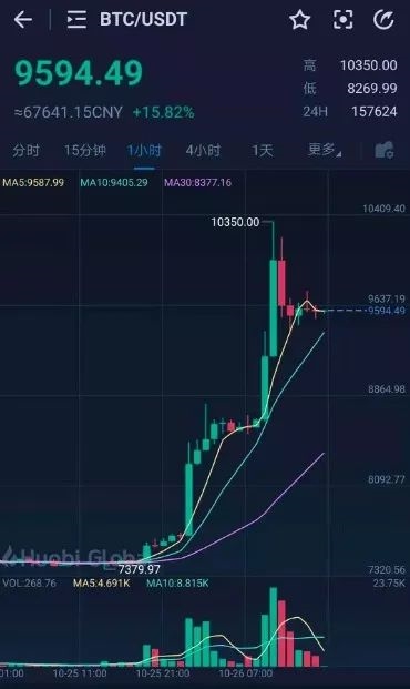 除了区块链概念股的股价狂欢外,主流数字货币也集体上扬。比特币也中止了连日下跌的行情,暴涨冲破10000美元。加密货币行情数据显示,近两日比特币价格迅速拉升,最高达到10350美元。此外,ETH、BCH等加密数字货币也纷纷上涨。