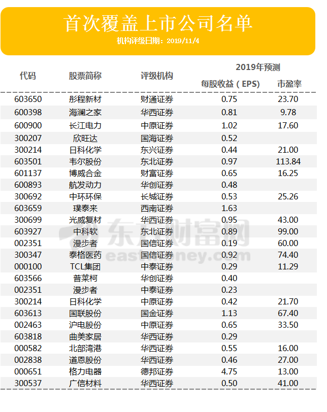 以下为11月4日被机构首次覆盖的上市公司名单: