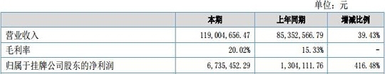 银禧光电2016年营收1.19亿元 同比增长39.43%