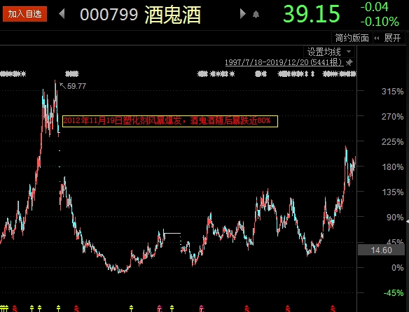 早在2012年,酒鬼酒就因塑化剂超标事件致业绩断崖式下跌,股价也因此最大跌超77%。