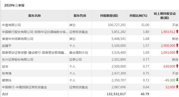 而在大消费机构抱团的背景下,酒鬼酒近几年才逐渐回复元气。2019年三季报酒鬼酒受到北向资金、华夏回报基金、牛散赵建平、国泰君安、东兴证券等机构和个人的买入或增持。