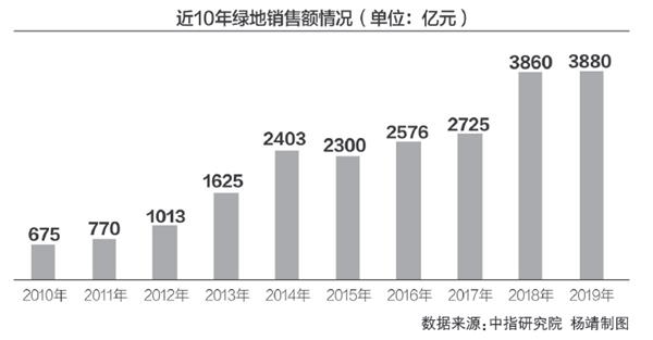 2019年,绿地集团房地产业销售3880亿元,未能达成此前制定的4000亿元目标。