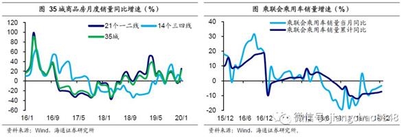 地产销售转正,汽车销量回升。受去年同期基数走低影响,20年1月35城地产销量增速回升转正至21.9%,主要由一二线城市销量增速改善所带动。19年12月乘联会乘用车销量增速-3.4%,较11月增速降幅收窄。