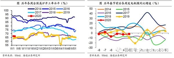高炉开工略降,发电耗煤回落。上周全国高炉开工率略降至66.6%,但仍高于19年同期水平,而Mysteel样本钢厂钢材产量增速小幅回落。受19年同期高基数影响,20月1月上旬六大集团发电耗煤同比增速转负至-6.1%,但农历口径下,春节前第三周发电耗煤同比增速-1.9%,降幅较节前第四周略有收窄。