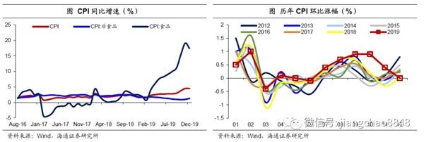 19年12月CPI环比稳定,同比涨幅与11月持平。食品方面,猪肉供给紧张进一步缓解,环比由涨转降,但大范围降雪导致生产和储运成本增加,鲜菜和鲜果价格均出现季节性上涨。非食品方面,受调价影响,汽油和柴油等油气产品价格上涨。