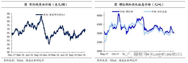 19年12月PPI环比持平,同比大幅回升至-0.5%。近期美伊局势一波三折,国际油价先涨后跌。1月以来国内煤价回升,油价和钢价平稳,考虑到去年基数较低,我们预计20年1月PPI同比将由负转正至0.3%。