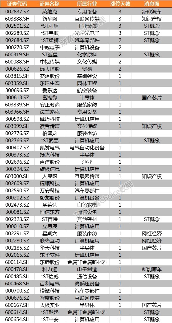 今日合计有50只个股涨停,计算机、电子领涨两市。