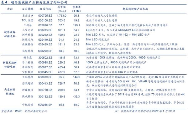 5、超高清视频大发展,产业链上有哪些受益板块?