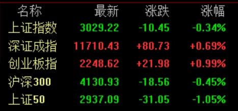 受外围调整以及特斯拉相关消息影响,连续3日成交额突破万亿后,今日A股盘中震荡加剧。截至上午收盘,上证综指小幅下跌0.34%,深证成指上涨0.69%,创业板指上涨0.99%。