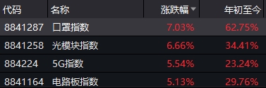 此外,今日早盘口罩概念再度走高,融捷健康、华升股份、齐心集团、道恩股份、泰达股份、延江股份涨停;5G、云办公等概念活跃,中兴通讯、沪电股份等近20只5G概念股涨停。