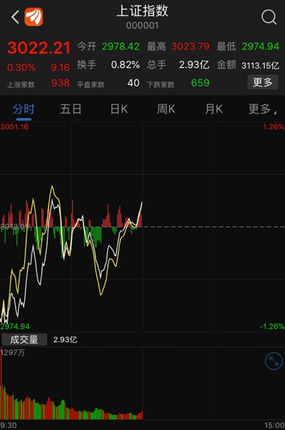 沪指今日早盘低开低走,盘中跌幅一度超过1%,但随着抄底盘的涌入,沪指翻红,重新站上3000点。截至午间收盘,上证指数报收于3022.21点,上涨0.3%。