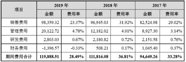 注:费用率指各项期间费用占当期销售收入的比例数据来源:公司招股书
