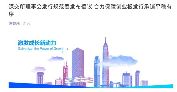 7月12日深交所披露创业板发行规范委第二次工作会议内容,分析研判发行承销业务可能面临的情况与应对,研究讨论合力推进注册制下创业板发行承销平稳起步的针对性措施。经合议,全体委员一致同意并发出进一步保障创业板规范发行的倡议。