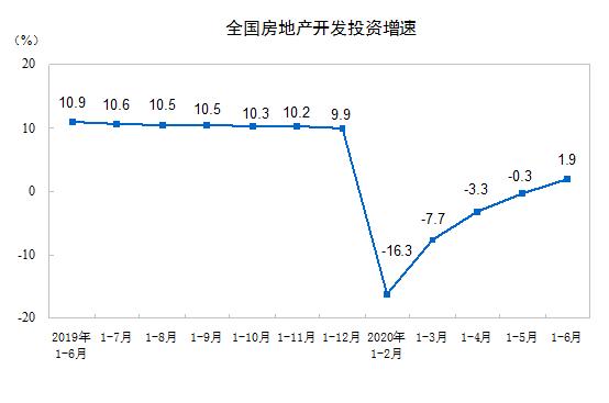 1—6月份,全国房地产开发投资62780亿元,同比增长1.9%, 1—5月份为下降0.3%。其中,住宅投资46350亿元,增长2.6%,增速比1—5月份提高2.6个百分点。