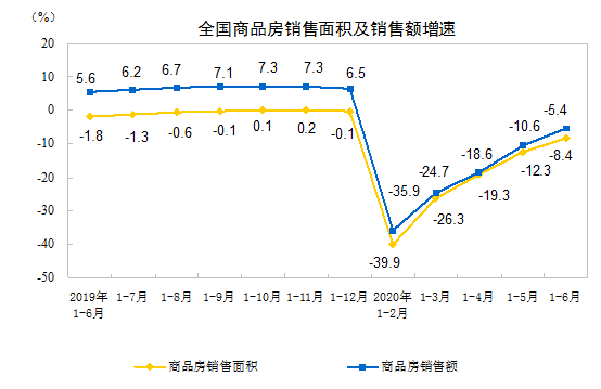 6月末,商品房待售面积51081万平方米,比5月末减少691万平方米。其中,住宅待售面积减少512万平方米,办公楼待售面积减少13万平方米,商业营业用房待售面积减少106万平方米。