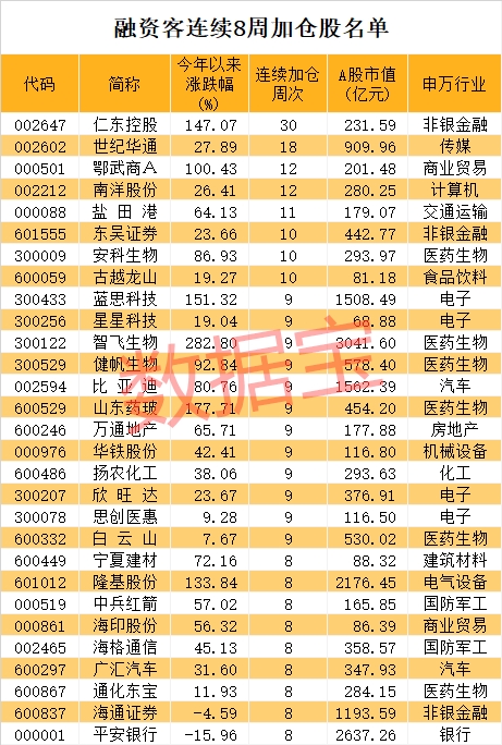 融资客连续10周加仓股仅8只 冷门股被罕见加仓30周!