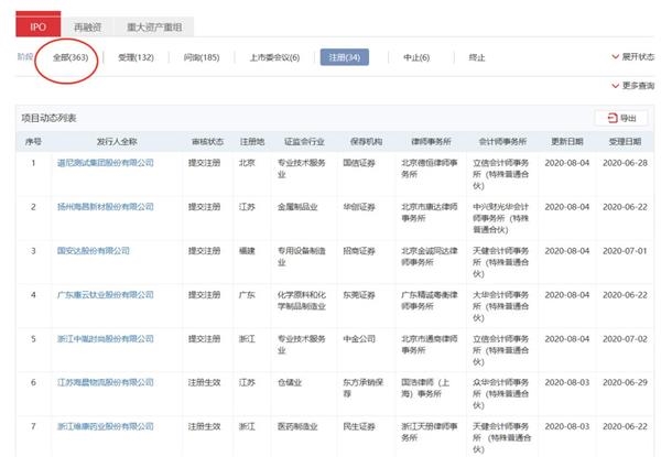 深交所官网显示,创业板注册制下,目前申请IPO企业数量已经达到363家,其中34家提交注册(含18家发行);受理175家、问询148家、上市委会议5家、中止6家。