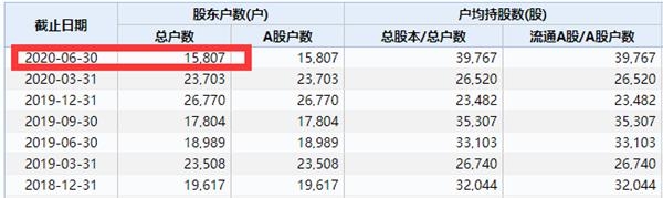 根据2020年中报显示,截至2020年6月30日,贵人鸟仍然有1.58万股东。