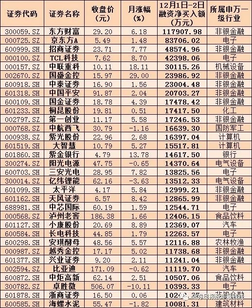 表:12月份以来融资净买入额超1亿元的个股情况:
