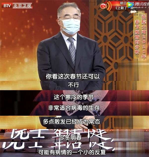 张伯礼在电视节目中对2021年春节疫情作出分析