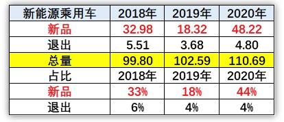 根据乘联会数据,2018年,在整体零售100万车的情况下,新品的销售达到32.98万台,占比33%。2019年总体达到102.6万辆,而新品销量为18.32万辆,占比为18%。2020年整体零售达到了111万辆,新品销量达到48万台,占比急升至44%。