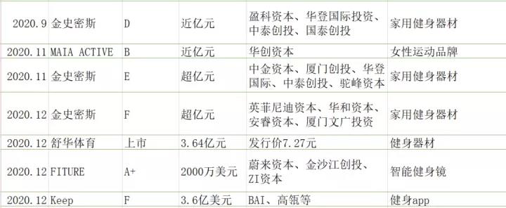 图:2020大众健身项目融资情况来源:公开资料整理
