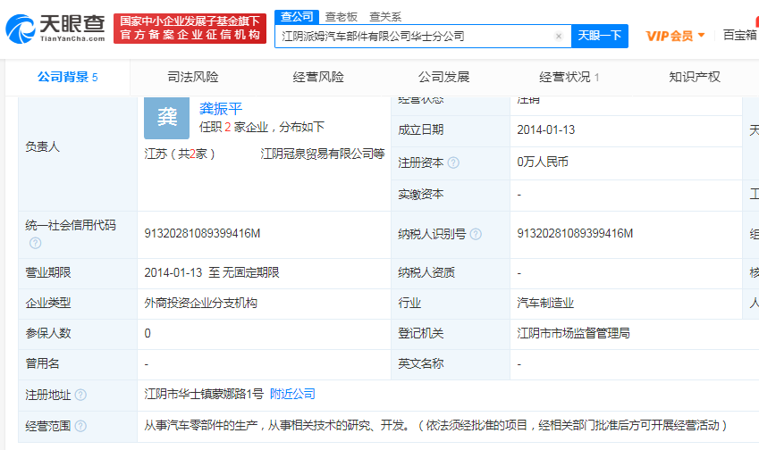 但工商资料显示,冠泉贸易成立后投资了派姆汽车,又成立了派姆汽车华士分公司,龚振平则是该公司负责人。派姆汽车华士分公司从事汽车零部件的生产,从事相关技术的研究、开发,公司经营地址是江阴市华士镇蒙娜路1号,与标榜股份相同。