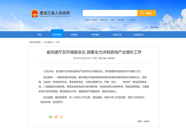 黑龙江再度释放楼市利好消息:要全力冲刺房地产业增长工作。