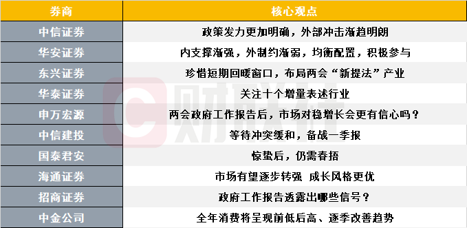 历史经验来看,“两会”对市场的短期提振效应明显,目前投资窗口已经打开?针对今年政府报告,哪些“新提法”更值得布局?十大券商最新策略观点新鲜出炉,具体如下: