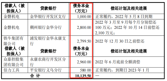 此次IPO前,吴宁直接持有公司38.95%的股份,为其控股股东及实控人。截至2022年3月4日,公司实控人吴宁及其配偶承担的个人负债及对外担保共计1.35亿元(不含利息),与首次提交的招股说明书中的披露金额有较大差异。其中,吴宁个人负债1959.70万元,为金磐机电等第三方提供担保金额1.16亿元。