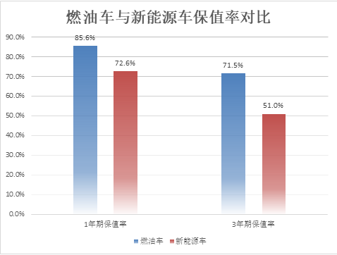 事实上,除了近期受涨价影响带动的准新车外,新能源二手车的整体保值率与燃油车相比仍差距不小。据中国汽车流通协会统计,传统燃油二手车平均1年期保值率维持在85.6%,3年期保值率在72.6%。相较而言,纯电动汽车1年期平均保值率为71.5%,3年期仅为51%。记者算了一笔账,同样花20万元买一辆车,三年后出售,燃油车平均能卖出14.5万元,而电车平均只能以10.2万元的价格售出。