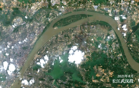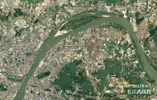 2021年8月和2022年8月拍摄的长江武汉段卫星影像对比。