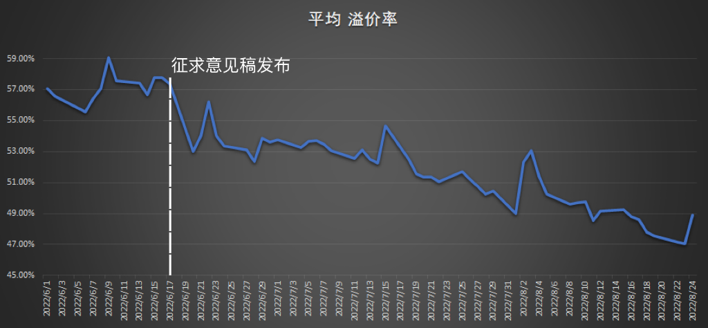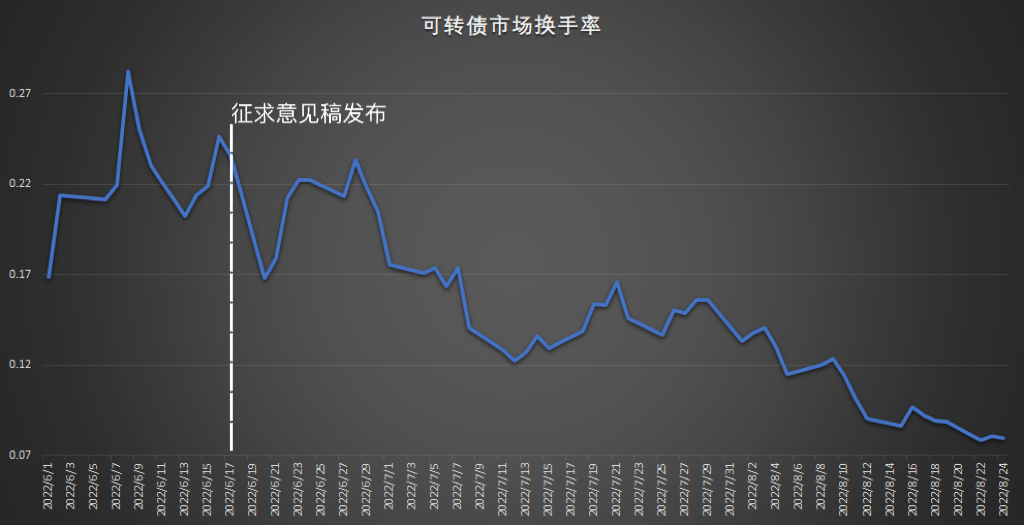 我们从市场的换手率,以征求意见稿发布的时间点为分界,我们可以看到从征求意见稿到8月份正式实行,市场的换手率出现了一个明显的回落,6月份最高的时候曾经达到过28%的一个换手率,到现在的话,市场整体的换手率大概维持在8%,有的时候7%点多一个水平。
