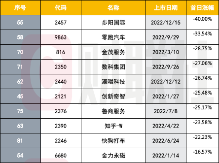 而步阳科技(02457.HK)则以上市当天40%的跌幅位于今年跌幅榜首位。