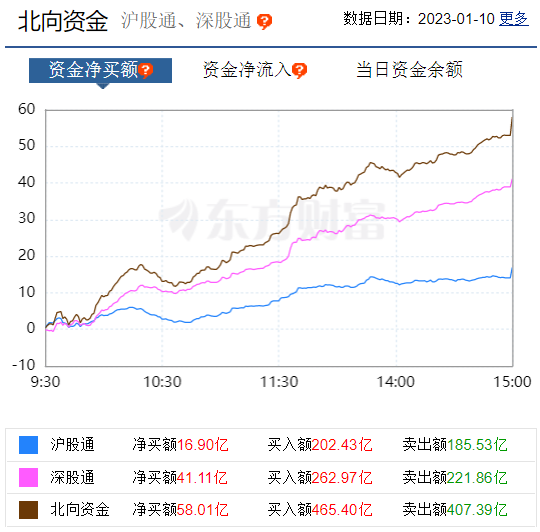 北向资金,今日合计净买入58.01亿元。其中,沪市净买入16.9亿元,深市净买入41.11亿元。