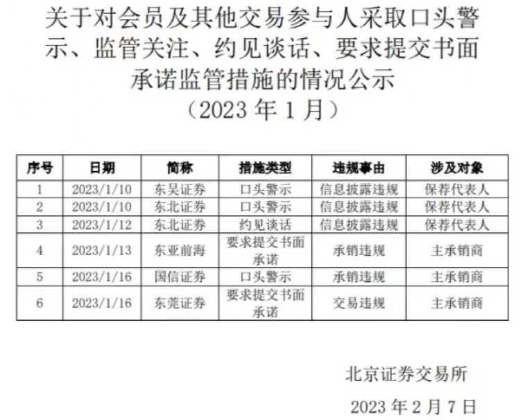2023年第一个月就有5家券商被北交所采取监管措施!