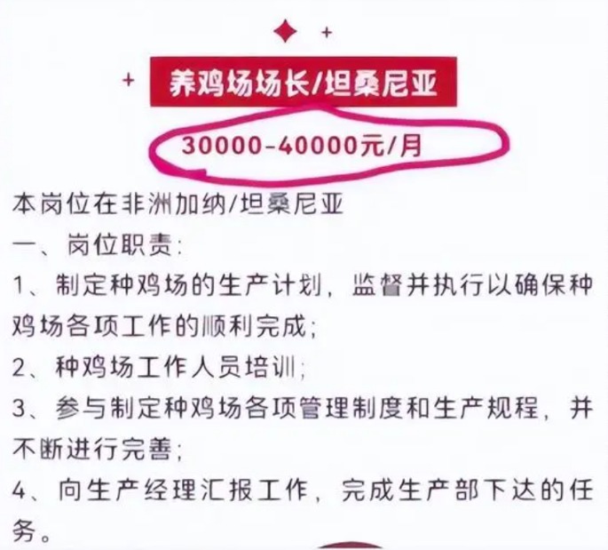 2月23日,一则“企业月薪4万招人去非洲养鸡”的话题上了热搜,引发众多网友热议。