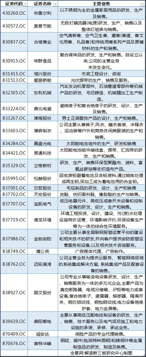 附表:保定市25家挂牌企业主营业务(含雄安新区4家企业)