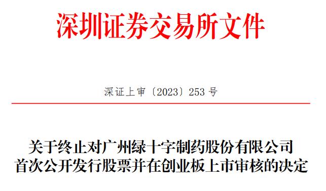 据深交所官网消息,深交所决定终止广州绿十字制药股份有限公司(以下简称“穗绿十字”)首次公开发行股票并在创业板上市审核。