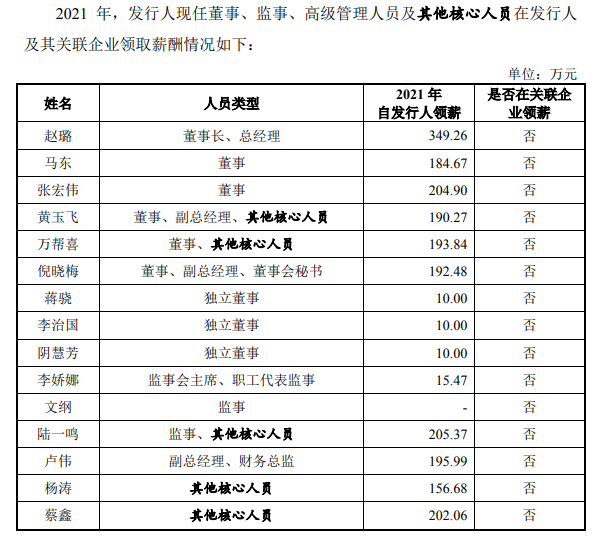 太美科技长期亏损也引起监管层注意,在问询中,上交所要求太美科技说明达到盈亏平衡的基础条件和经营环境,说明营业收入的快速增长是否具有可持续性。太美医疗表示根据测算,假设公司收入规模增长至 15 亿收入以上的水平,且毛利率维持在 40%以上,期间费用率下降至 40%以下,若以上假设条件均可达成,将实现扭亏为盈。尽管持续亏损,与公司持续亏损形成反差的是,太美医疗高管薪酬逆势大幅上涨。招股书信息显示,2020年,太美医疗董事长赵璐2020年年薪182.3万元,2021年上涨至349.26万元,涨幅92%,公司其他高管薪酬也出现不同幅度的上涨。2020年,公司14位董事、监事、高级管理人员及核心技术人员薪酬1524.8万元,平均年薪超过108.9万元,2021年,上述14位董事、监事、高级管理人员及核心技术人员薪酬涨至2120.99万元,平均年薪超151万元。