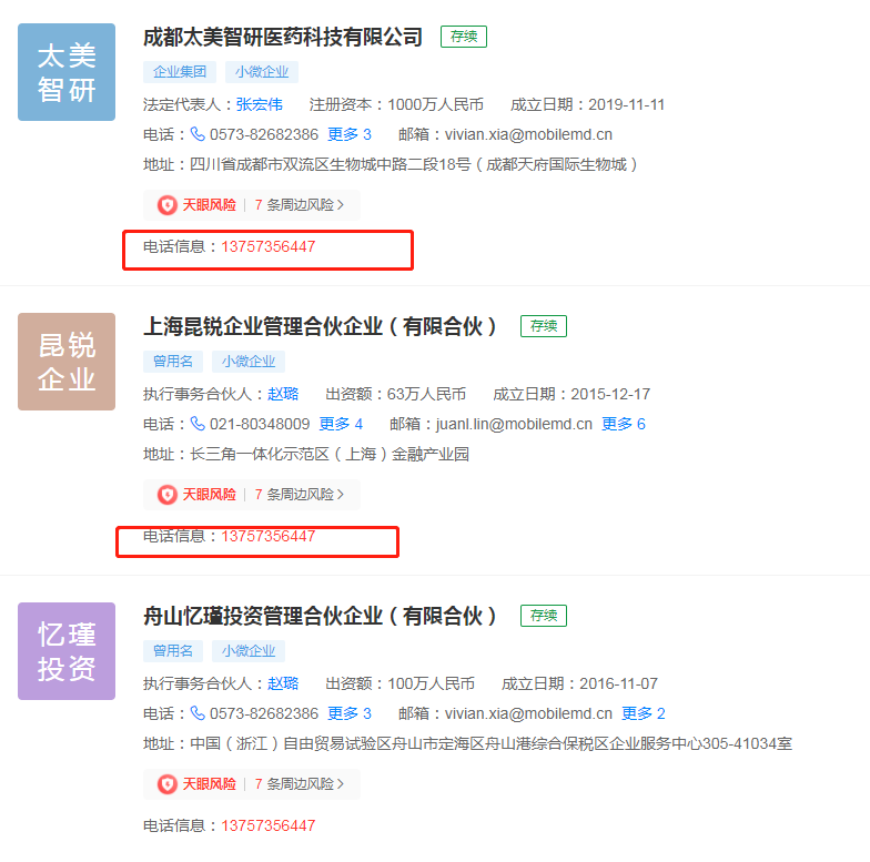 另一方面,太美医疗称公司主要产品包括SaaS产品/定制化软件及密切关联的专业服务。天眼查显示,嘉兴联图网络科技有限公司是太美医疗同业企业,产品包括壳牌物流SaaS.信息显示,嘉兴联图网络科技有限公司的对外联系电话13757356447与太美医疗子公司成都太美智研医药科技有限公司、员工持股平台上海昆锐、舟山忆瑾等相同。经了解,上述联系电话的所有人为太美医疗员工夏伟伟。嘉兴联图网络科技有限公司是否是太美医疗关联企业?公司的员工又是否存在同业兼职情况?本网记者发函求证,但太美医疗并未能回复。